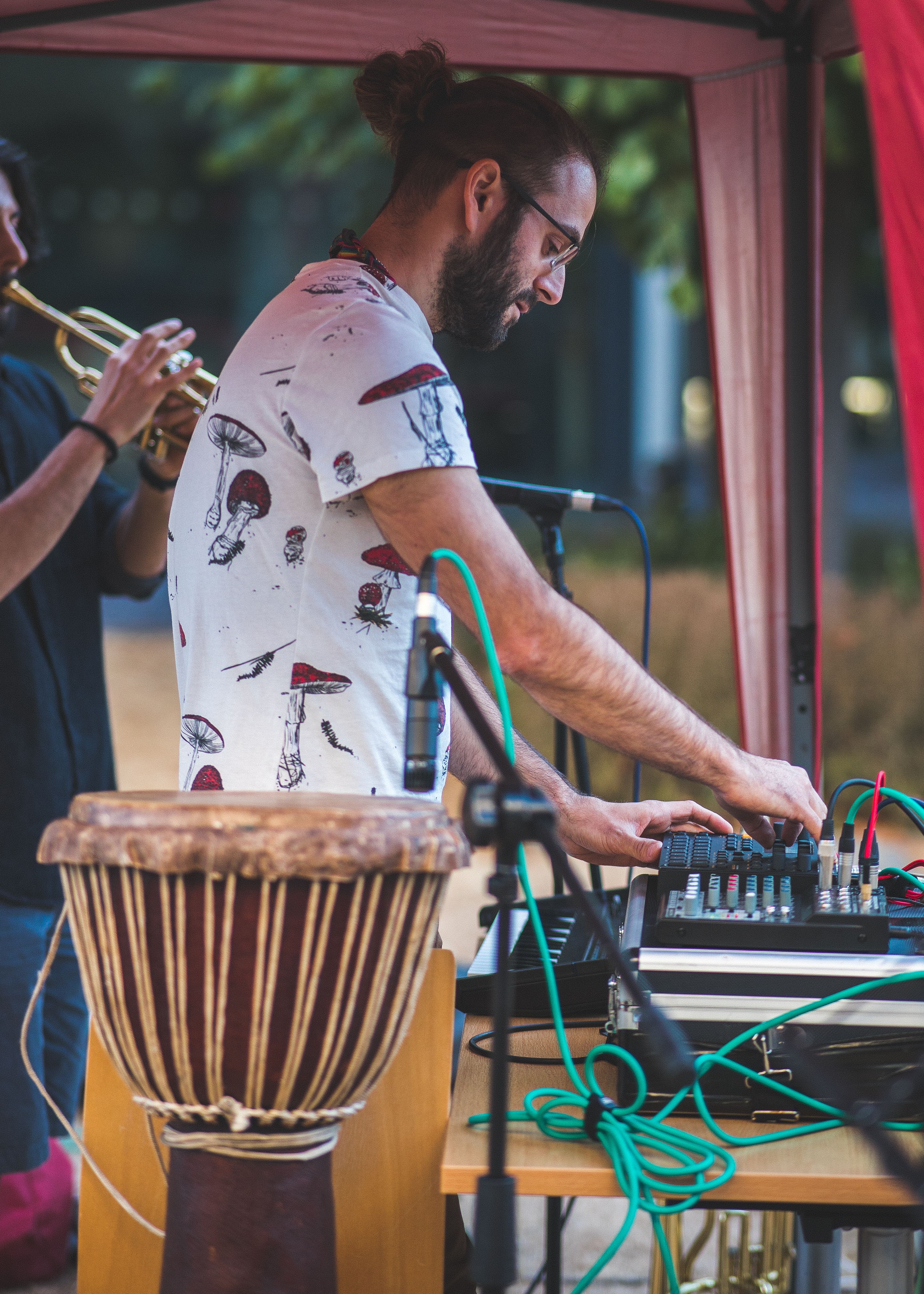 For our performances, expect structured mixed-tempo audio journeys that blend electronic psychedelic ambient, organic downtempo, and psybass together in a curious exploration of melody and rhythm. You will see us on stage and in the studio using hardware synthesisers and DAWs accompanied by and melded with melodic and percussive acoustic instruments.